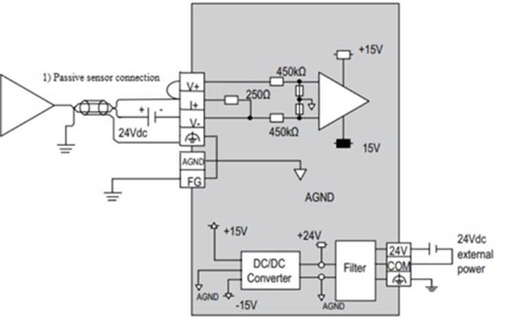 Активный датчик содержит собственный источник питания и формирует токовую петлю самостоятельно. Он подключается к входу приёмного устройства без необходимости в дополнительном источнике питания, как показано на рисунке 1.